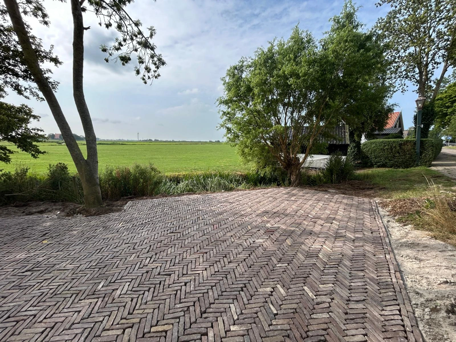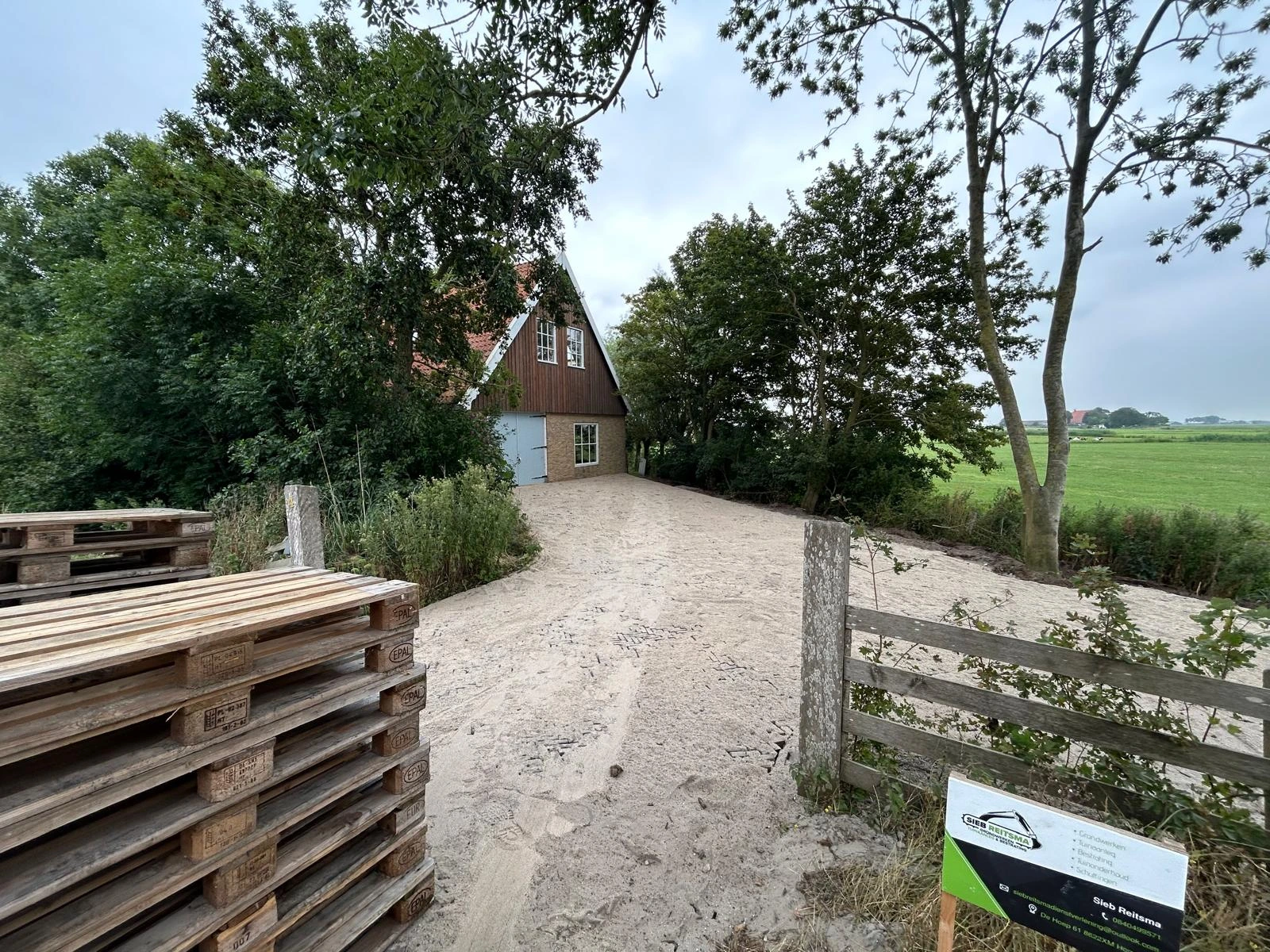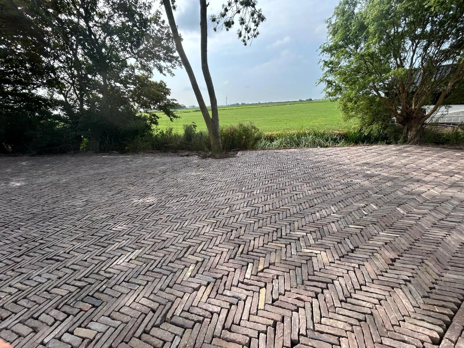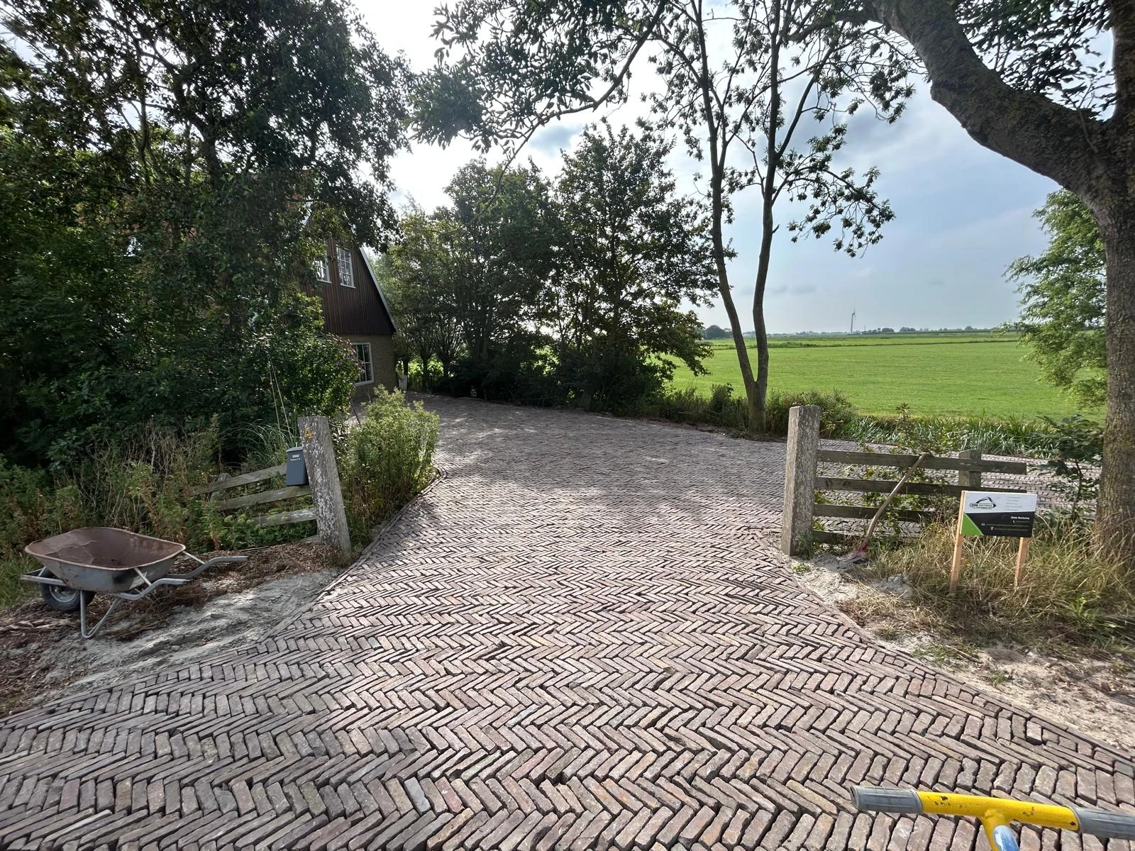 Voor deze klanten in Allingawier mochten wij de complete bestrating vernieuwen en uitbreiden. Er is gekozen voor een combinatie van antieke gebakken stenen (50 jaar oud) en Schelvis-tegels van 60×60 cm. In totaal is er ongeveer 250 m² aangelegd. Het resultaat mag er zijn!